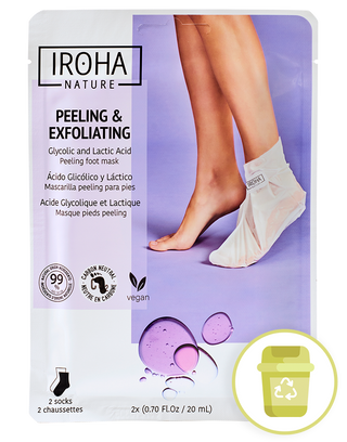 Los Calcetines peeling exfolian profundamente las callosidades, grietas y durezas a la vez que ayudan a promover la renovación celular y suavizar la piel áspera en una sola aplicación gracias a su potente fórmula con Ácido Glicólico, Ácido Láctico y Ácido Salicílico. Esta combinación de ácidos eliminan por completo la piel muerta, consiguiendo así unos pies totalmente renovados y suaves. Gracias a su tecnología de doble capa, los calcetines crean un efecto sauna para potenciar los resultados dando una experiencia de tratamiento profesional sin salir de casa.