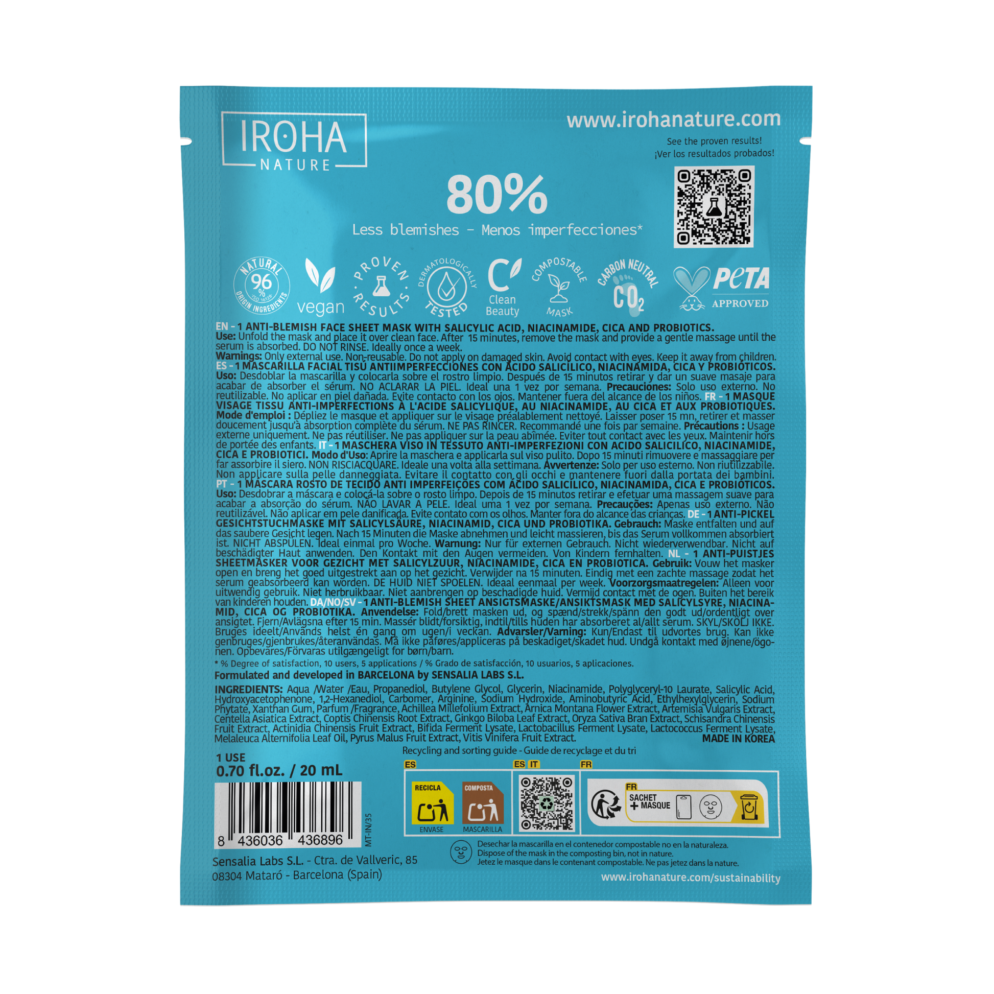 With the Iroha Nature Anti-Blemish Mask, unmask your pimples and enjoy your most natural skin: no filters, no complexes, no retouching.