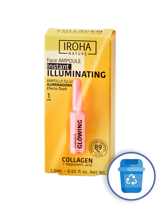 Discover the power of natural radiance with Iroha Nature's Instant Illuminating Ampoule with Collagen, designed to instantly revitalize and refresh your skin. This advanced formula works from the first application, restoring vitality and radiance to your face.