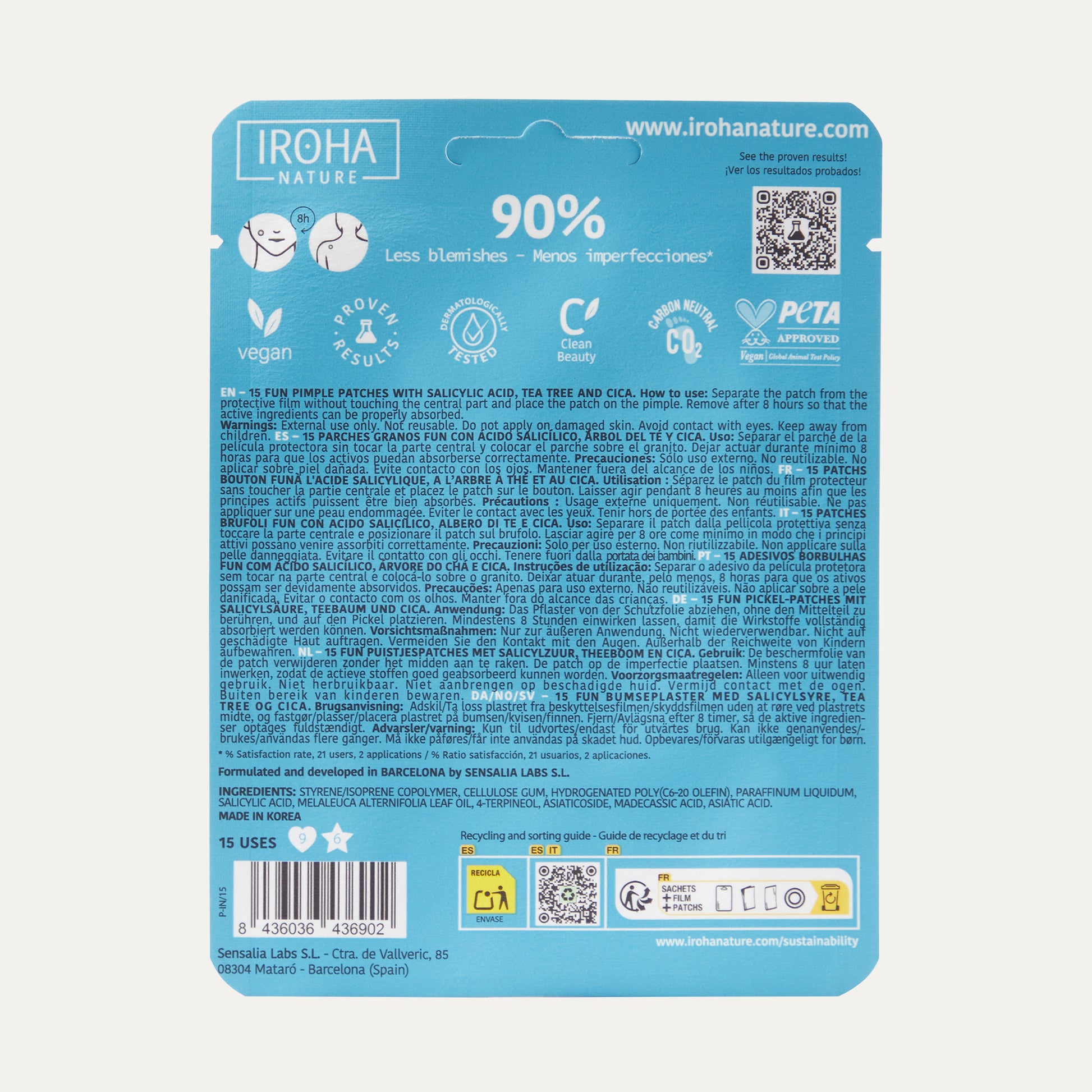 Iroha Nature FUN Pimple Patches: the most fun way to get rid of your pimples in record time. These heart- and star-shaped patches are perfect for those who accept their skin as it is, without filters or hang-ups. Formulated with salicylic acid, tea tree and centella asiatica, these patches with hydrocolloid technology and a fully formulated base are not only a declaration of self-love, but also protect, reduce inflammation, promote healing, eliminating pimples without a trace. Because taking care of your skin can also be very exciting, turn treating pimples into your most FUN time.