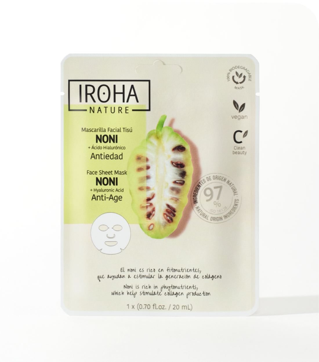 Fui una de las elegidas para probar las mascarillas de Iroha nature y escogí la de Noni + Ácido Hialurònico.