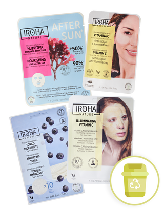 Our masks feature a tissue fabric that is 100% biodegradable and made from cotton and eucalyptus sourced from sustainable forests. This biodegradable fabric offers an excellent system for optimal absorption of active ingredients and the best results, while also respecting the environment, as it degrades in the soil in just 75 days without leaving a trace in the ecosystem if recycled in the organic waste bin
